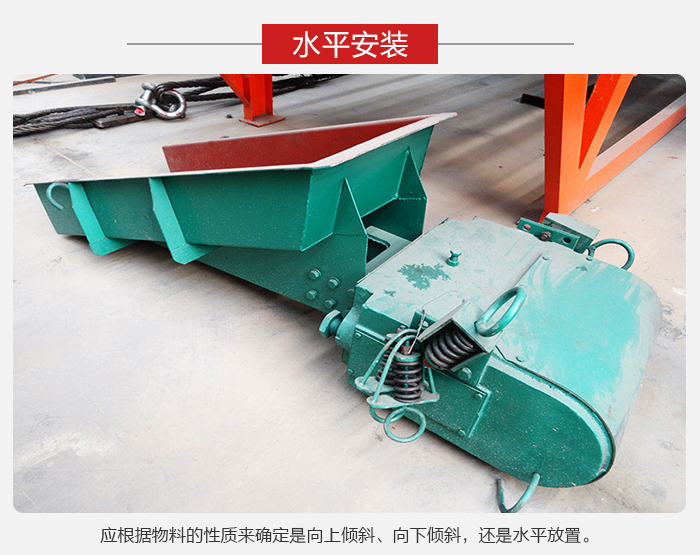 電磁振動給料機槽體可以水平安裝,也可以傾斜安裝,其給料能力與下傾角度成正比,但下傾角過大容易引起物料自流,難以保證給料精度。因此應根據物料的性質來確定是向上傾斜、向下傾斜,還是水平放置。