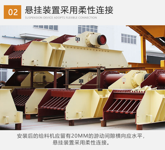 ⒉安裝后的給料機應留有20mm的游動間隙橫向應水平,懸掛裝置采用柔性連接。