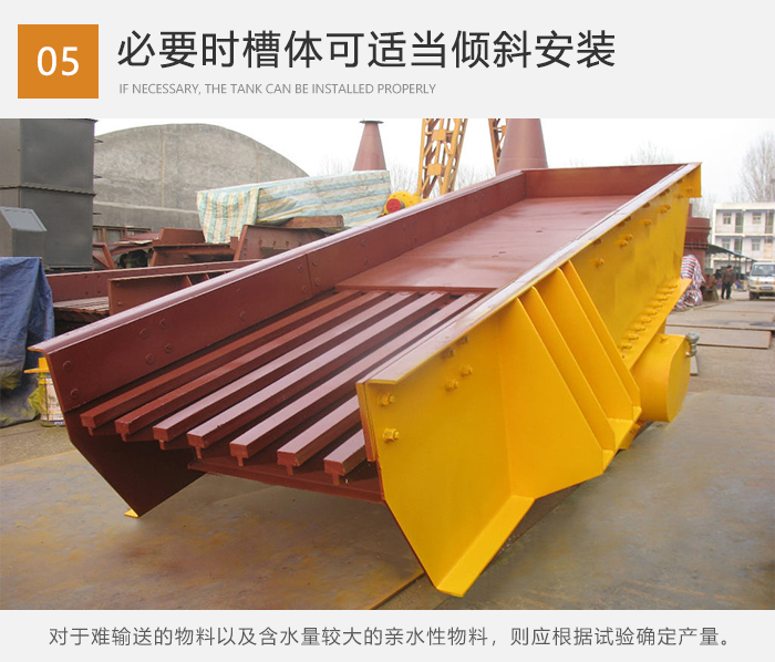 6.對于難輸送的物料(如滑石粉、鈦白粉、白泥、面粉、粘土等),以及含水量較大的親水性物料,則應根據試驗確定產量。必要時將振動給料機的槽體適當傾斜安裝(一般向下傾斜10~15度),以增加給料量。