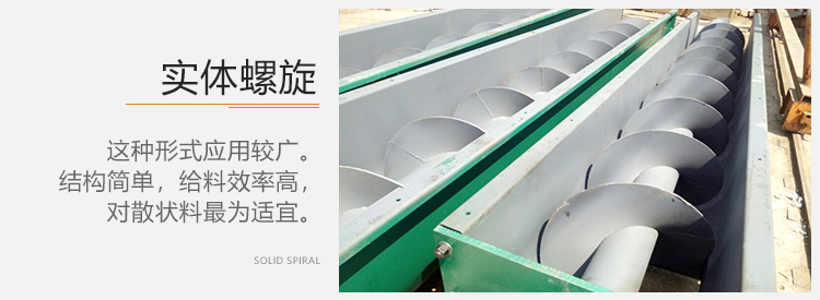 1)實(shí)體螺旋,這種形式應(yīng)用較廣。它結(jié)構(gòu)簡(jiǎn)單,給料效率高,對(duì)散狀料為適宜。
