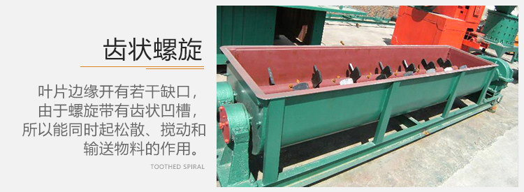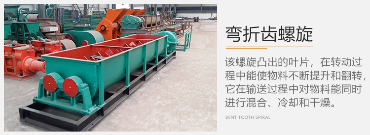 4)彎折齒螺旋,該螺旋凸出的葉片,在轉(zhuǎn)動(dòng)過(guò)程中能使物料不斷提升和翻轉(zhuǎn),它在輸送過(guò)程中對(duì)物料能同時(shí)進(jìn)行混合、冷卻和干燥。
